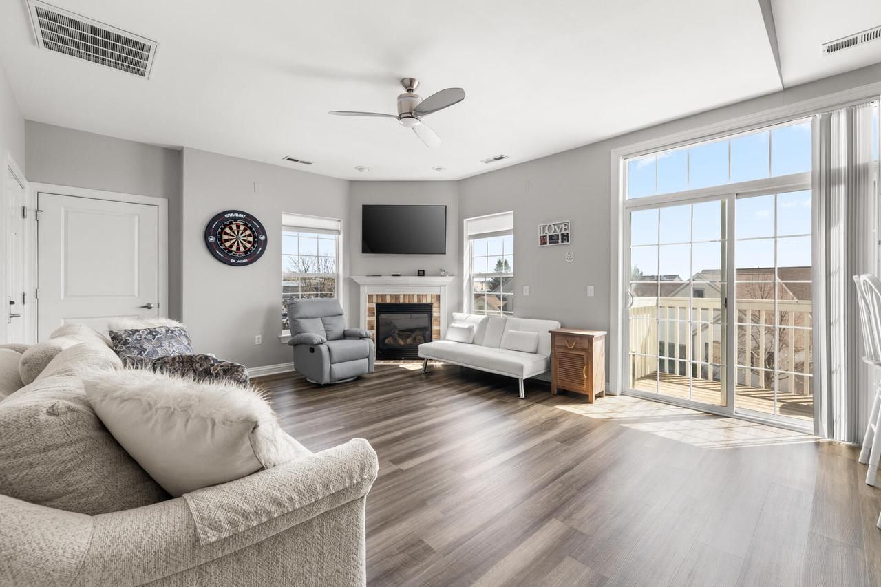 Beautifully updated end-unit 2nd floor condo in the highly desirable Villas of Waukesha. Bright, open-concept layout with newer wide-plank luxury vinyl flooring and a welcoming, modern feel throughout. Spacious great room with cozy gas fireplace creates an ideal space for both everyday living and entertaining. Kitchen features white cabinetry with crown molding, stainless steel appliances, brushed nickel finishes, and raised peninsula seating. Generous primary suite with private bath and large walk-in closet. Enjoy a private south-facing balcony, exceptional storage, in-unit laundry, and two underground parking spaces with additional storage--highly sought-after amenities. Well-maintained and move-in ready in a prime location near shopping, dining, and I-94 access. Rare opportunity!